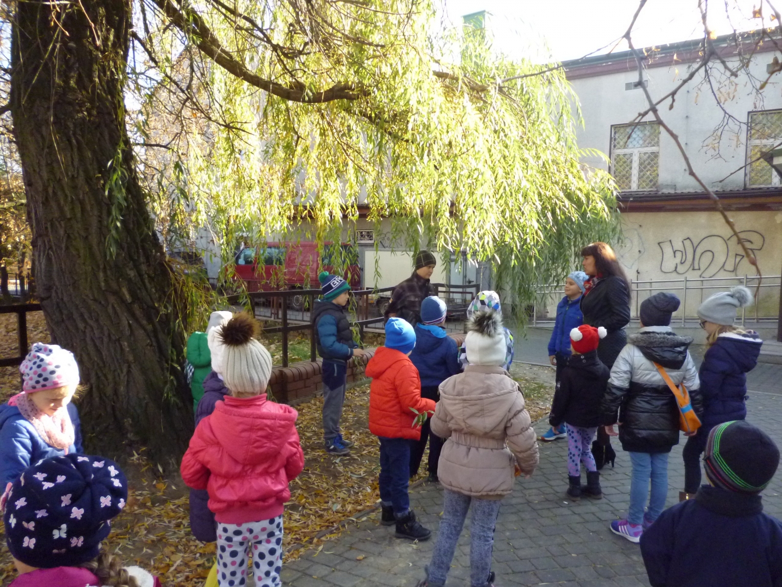 Po spektaklu dzieci bawiły się w parku miejskim. Rozpoznawały i nazywały różne gatunki drzew.
