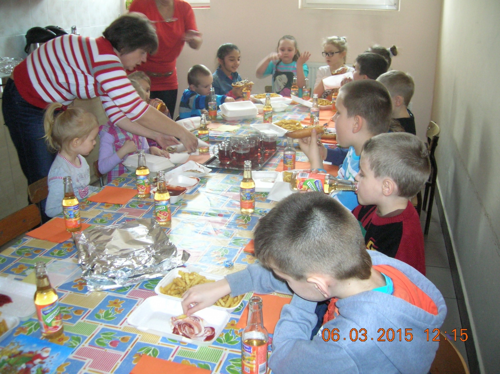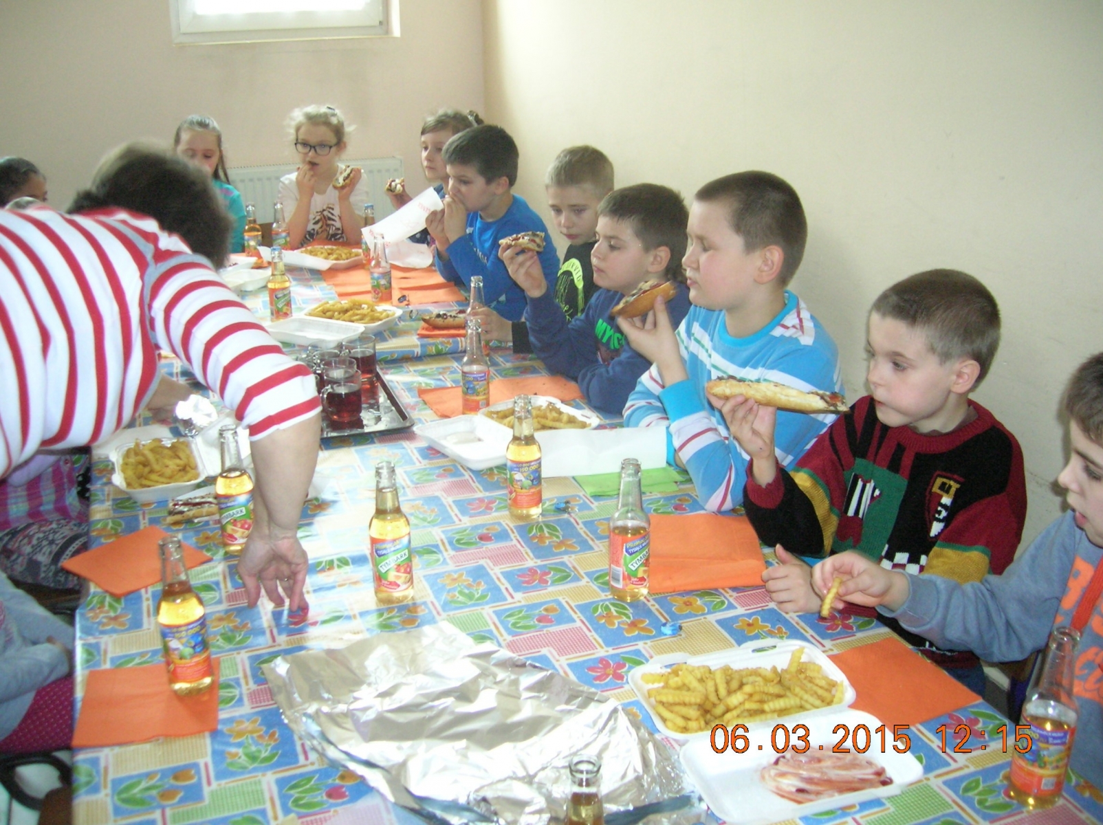 Z okazji Dnia Kobiet chłopcy z naszej szkoły pamiętali o swoich paniach i koleżankach wręczając kwiaty i słodycze. Dodatkową atrakcją był poczęstunek - frytki, zapiekanka i napój, ufundowany ze środków Funduszu Sołeckiego.