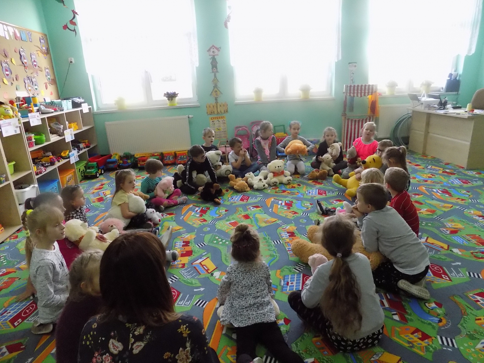 24 listopada dla dzieci z klas 0-III był dniem bardzo radosnym. W tym dniu do szkoły razem z nimi przywędrowały pluszowe misie. Na początku każda grupa malowała piękne portrety swoich zabawek. Następnie pan radny Grzegorz Krajewski oraz pani dyrektor Iwona Krajewska czytali dzieciom bajki o misiach. Uczniowie słuchali z wielkim zainteresowaniem i chętnie odpowiadali na pytania związane z bohaterami książek. Kolejnym etapem świętowania był słodki poczęstunek - wafelki z miodkiem. Na koniec wszystkie dzieci zgromadziły się w sali oddziału przedszkolnego, gdzie opowiadały historie swoich pluszaków oraz wykonywały z nimi różne ćwiczenia gimnastyczne. Dzień z misiem zakończył się mini-dyskoteką oraz zdjęciami w specjalnie przygotowanej na tę okazję fotobudce.