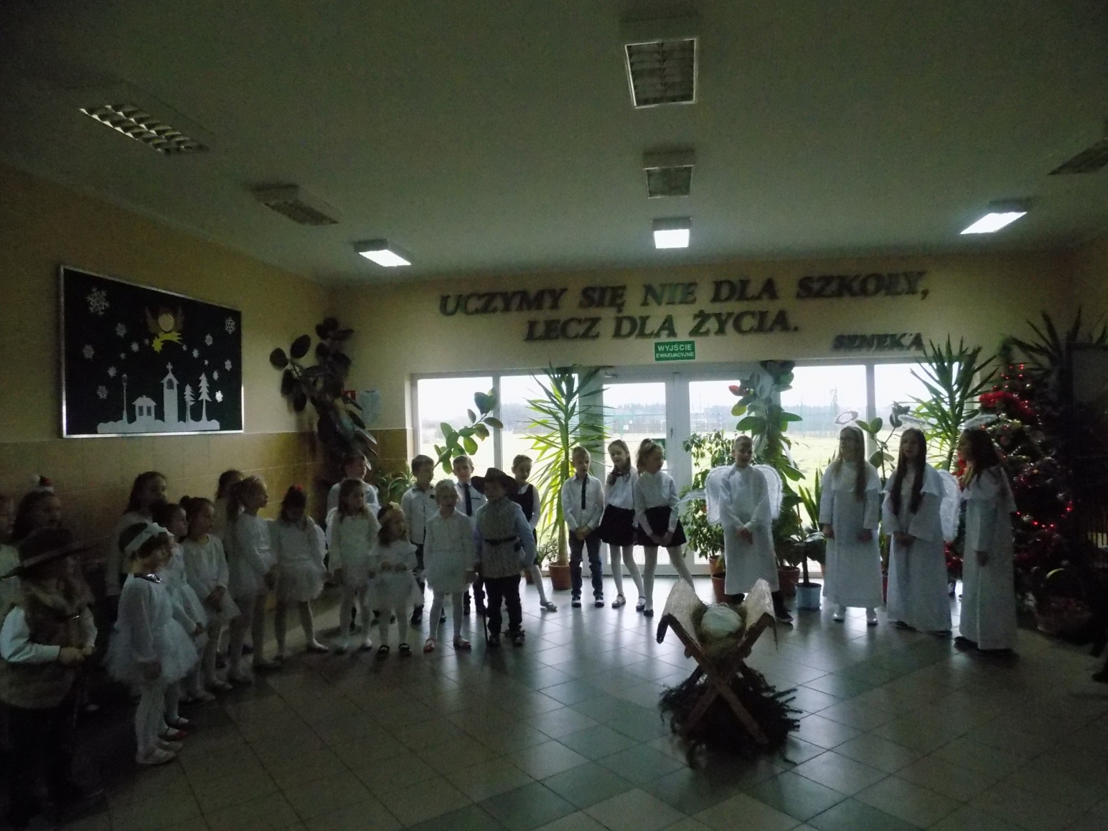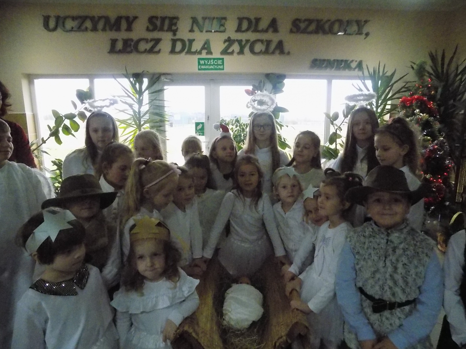 Dnia 22 grudnia 2018r. dzieci z naszej szkoły przedstawiły Jasełka dla swoich rodziców i grona pedagogicznego. Głównym celem tej uroczystości było wprowadzenie uczestników w radosną atmosferę Świąt Bożego Narodzenia, kształcenie umiejętności wyrażania uczuć i przeżyć podczas inscenizacji Jasełek, wzmacnianie więzi emocjonalnej z rodziną, rozwijanie indywidualnych predyspozycji i uzdolnień aktorskich dzieci oraz nabywanie odwagi, śmiałości podczas występów przed publicznością. Przedstawienie było wyjątkowe. Mali aktorzy zaprezentowali się doskonale. Nasi najmłodsi artyści z oddziału przedszkolnego śpiewali pastorałki i kolędy, wykonywali układy taneczno-ruchowe. Na koniec dzieci złożyły wszystkim Bożonarodzeniowe życzenia oraz wręczyły upominki dla rodziców –świąteczne pierniczki. W przygotowanie uroczystości włączyły się panie: Hanna Walczak, Paulina Miłowska, Barbara Chojnacka.