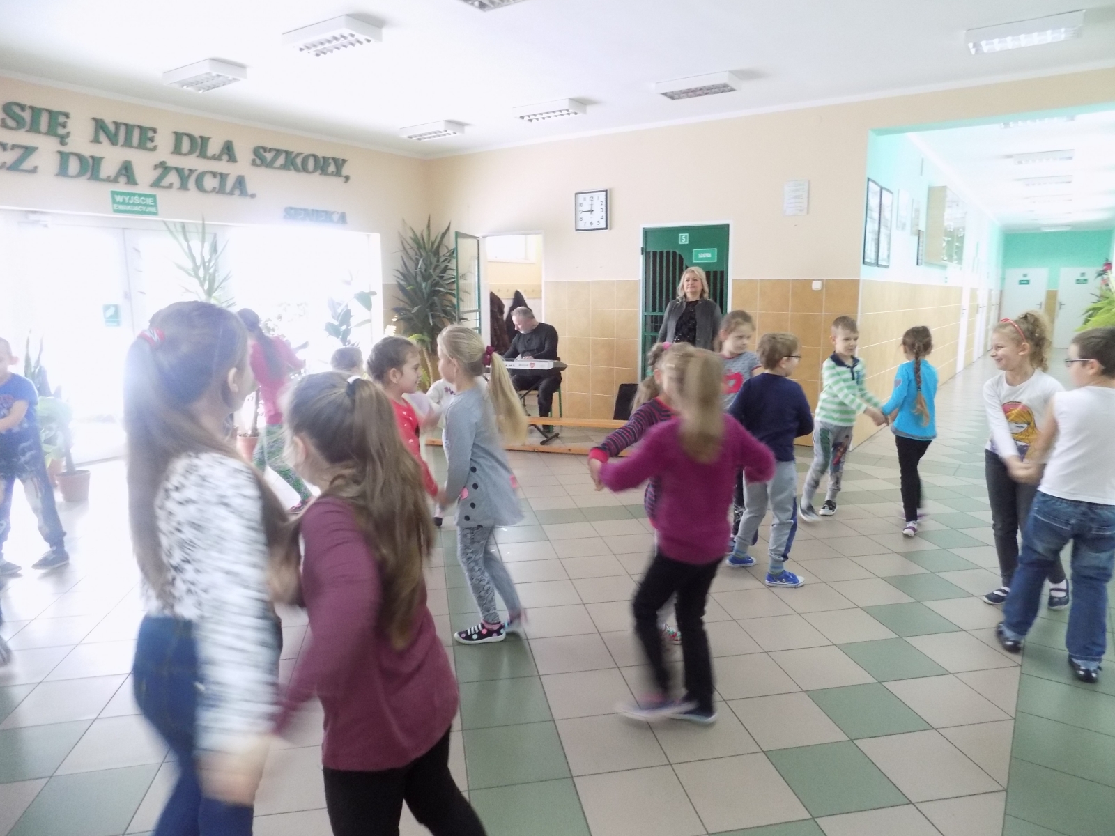 18 stycznia 2017 roku gościliśmy w naszej szkole muzyków sceny łódzkiej. Spotkanie to miało inny charakter niż poprzednie, gdyż dzieci nie poznawały nowych instrumentów tylko karnawałowe tańce z różnych krajów. Pani Ewa Szymkiewicz zaprosiła słuchaczy do wspólnej zabawy. Wcieliła się w rolę wodzireja a dzieci przyjęły to z wielkim entuzjazmem. Mimo zimowej pory atmosfera była bardzo gorąca.