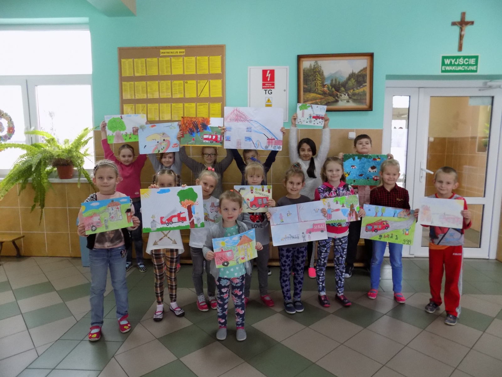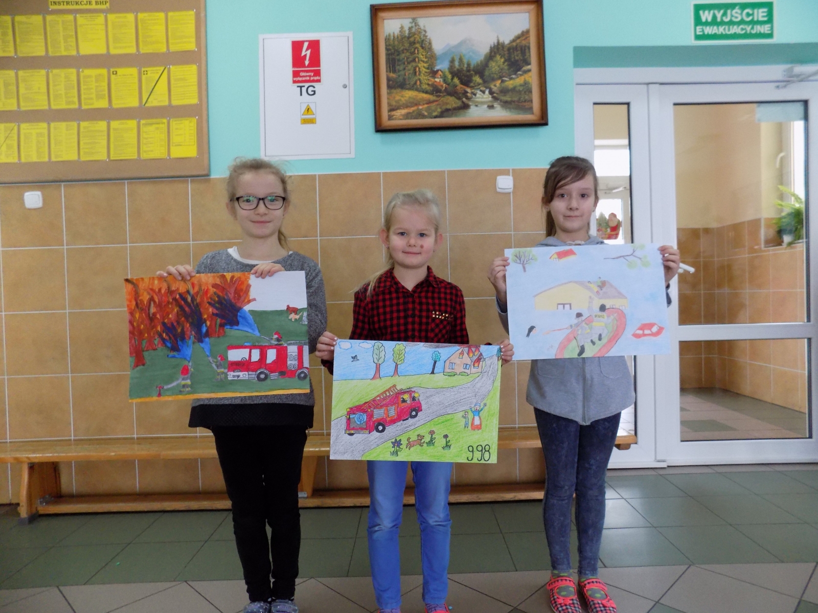 Kolejny raz uczniowie naszej szkoły wzięli udział w konkursie plastycznym pod hasłem "Młodzież zapobiega pożarom". Na etap szkolny przygotowano 16 prac. Do etapu gminnego zakwalifikowały się prace: W. Bronikowskiej, J. Hofman, A. Kraski z oddziału przedszkolnego oraz A. Andrzejczak, S. Dróżdż i A. Słowińskiej z klas I-III.