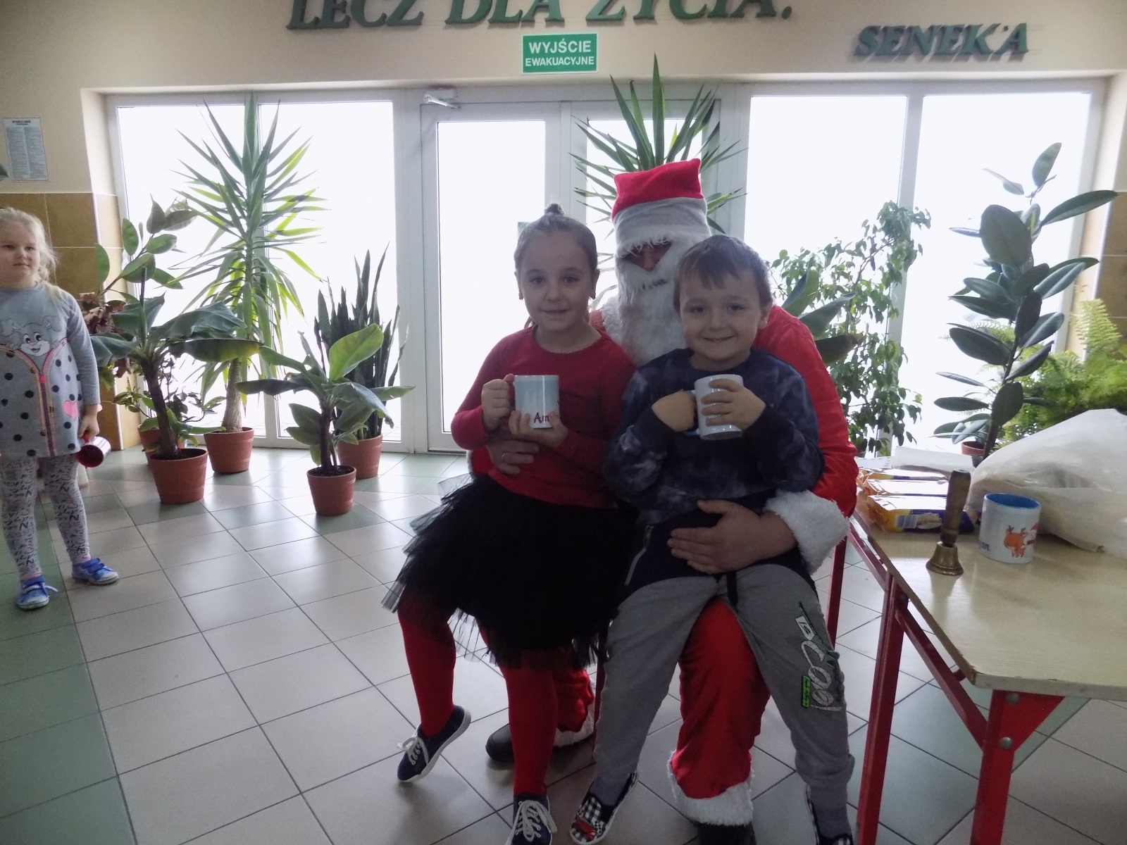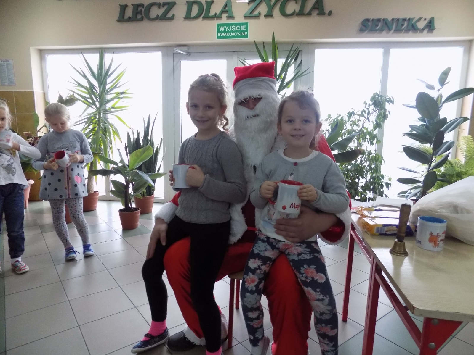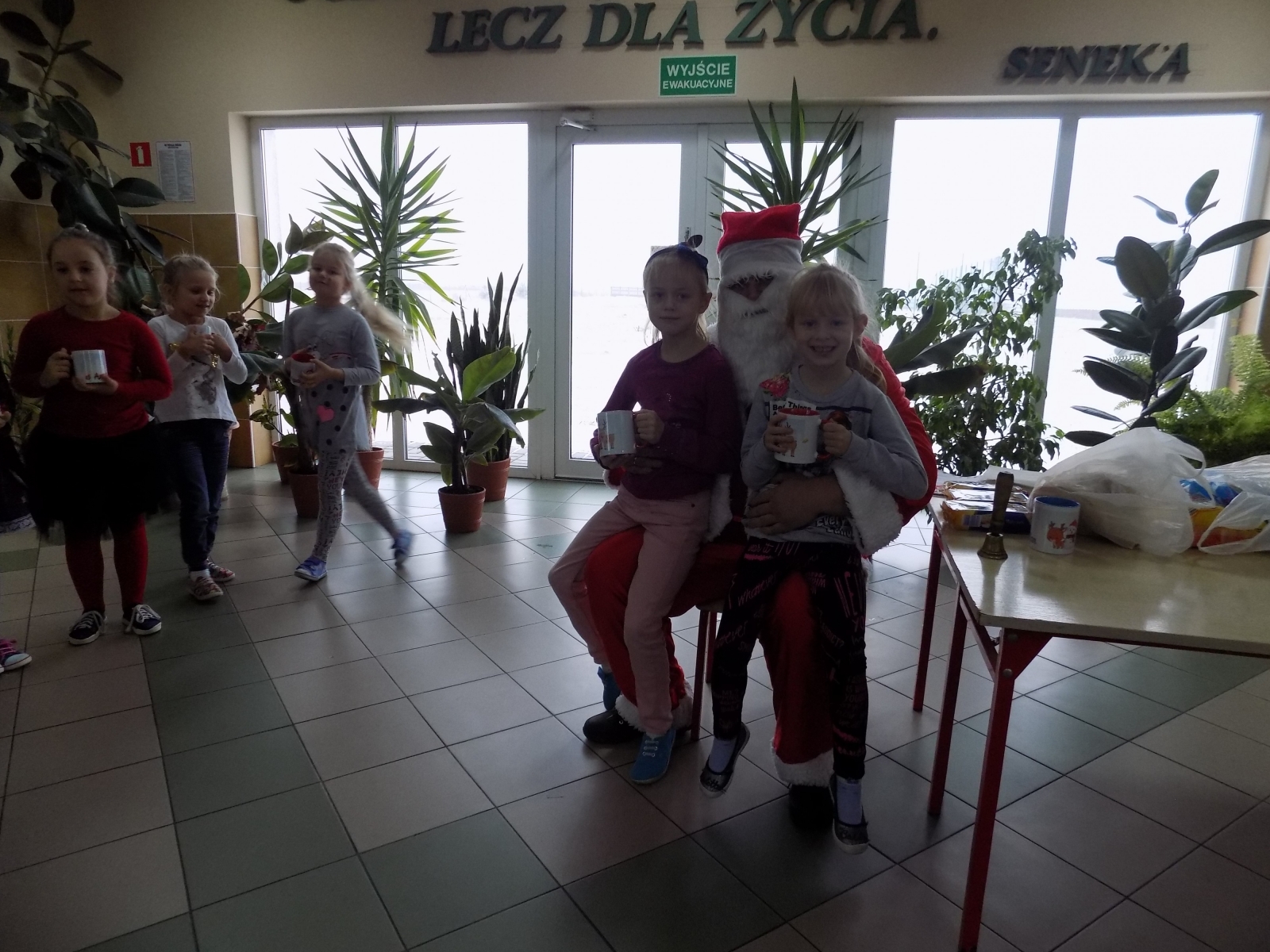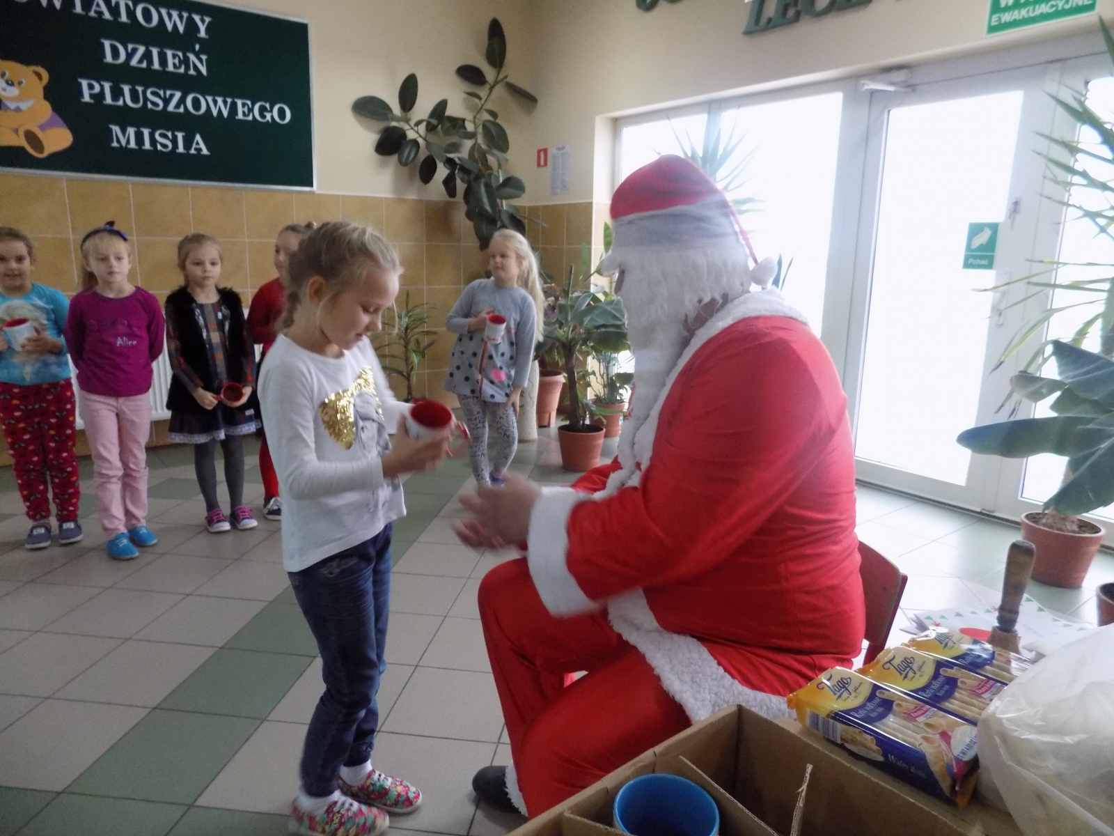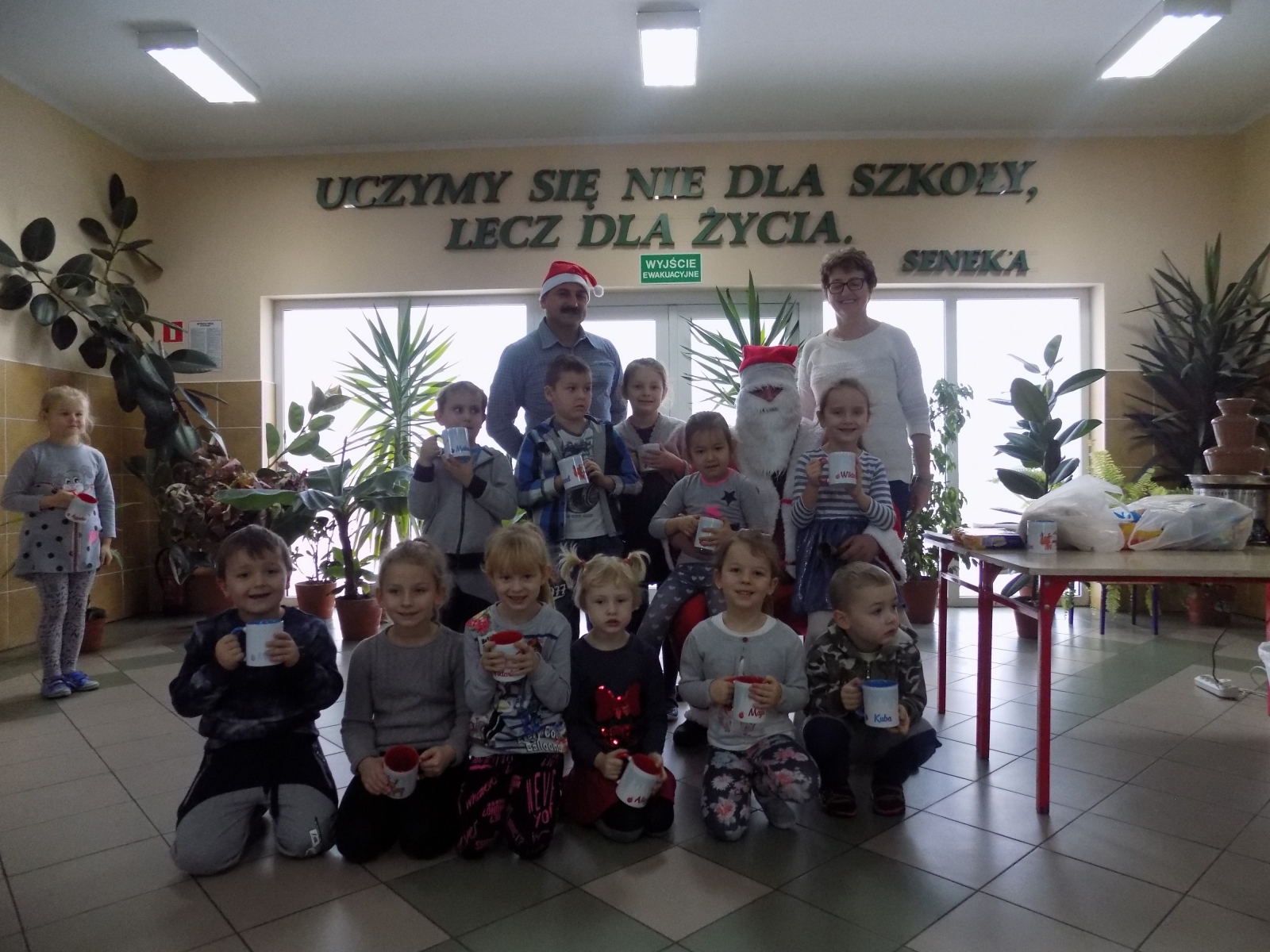 6 grudnia to jedna z wielu dat w kalendarzu szkolnym, na którą dzieci czekają z niecierpliwością. Od rana czuć było w szkole podniosły nastrój. Młodsze dzieci przygotowywały laurki a starsze pisały listy do Mikołaja. Około godziny 9.30 rozległ się na korytarzu znajomy dzwonek. Dzieci z radością powitały niezwykłego gościa. Na początku zaśpiewały dla niego piosenki a potem wręczyły laurki. Nadszedł długo oczekiwany moment - wręczenie upominków. W tym roku uczniowie a także pracownicy szkoły otrzymali świąteczne kubeczki z imieniem. Na koniec dzieci robiły sobie z Mikołajem pamiątkowe zdjęcia.