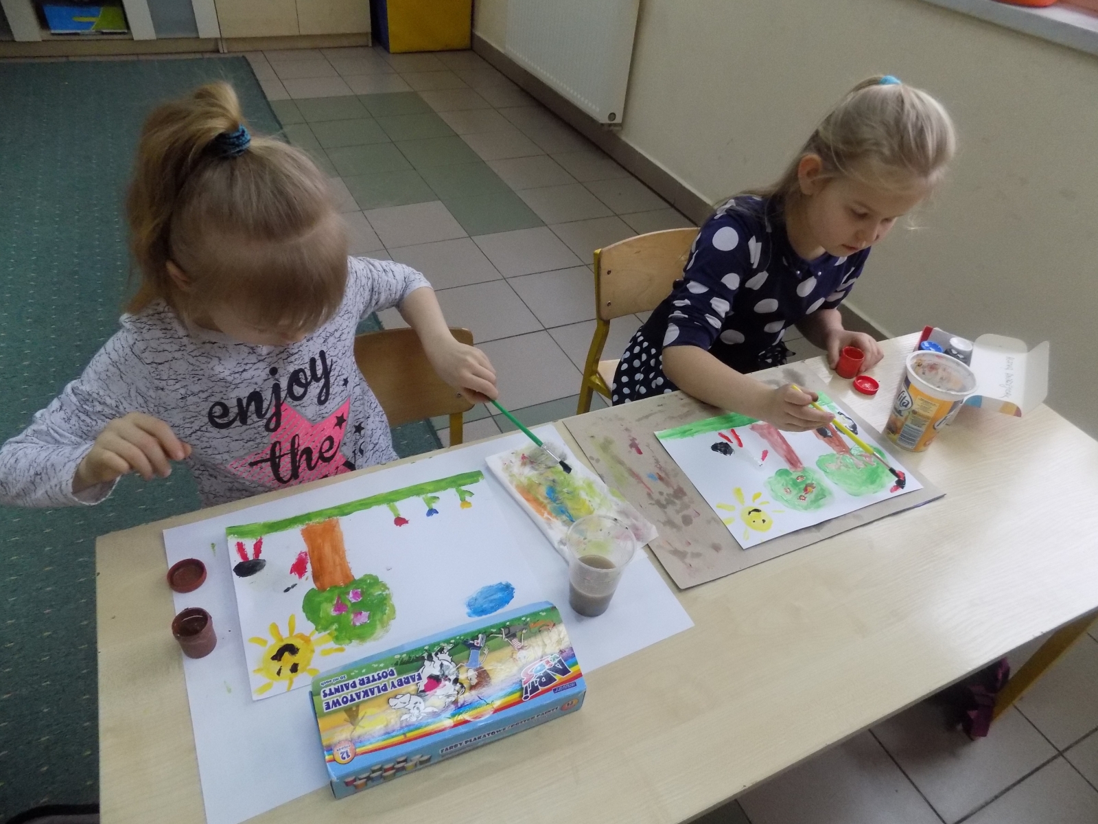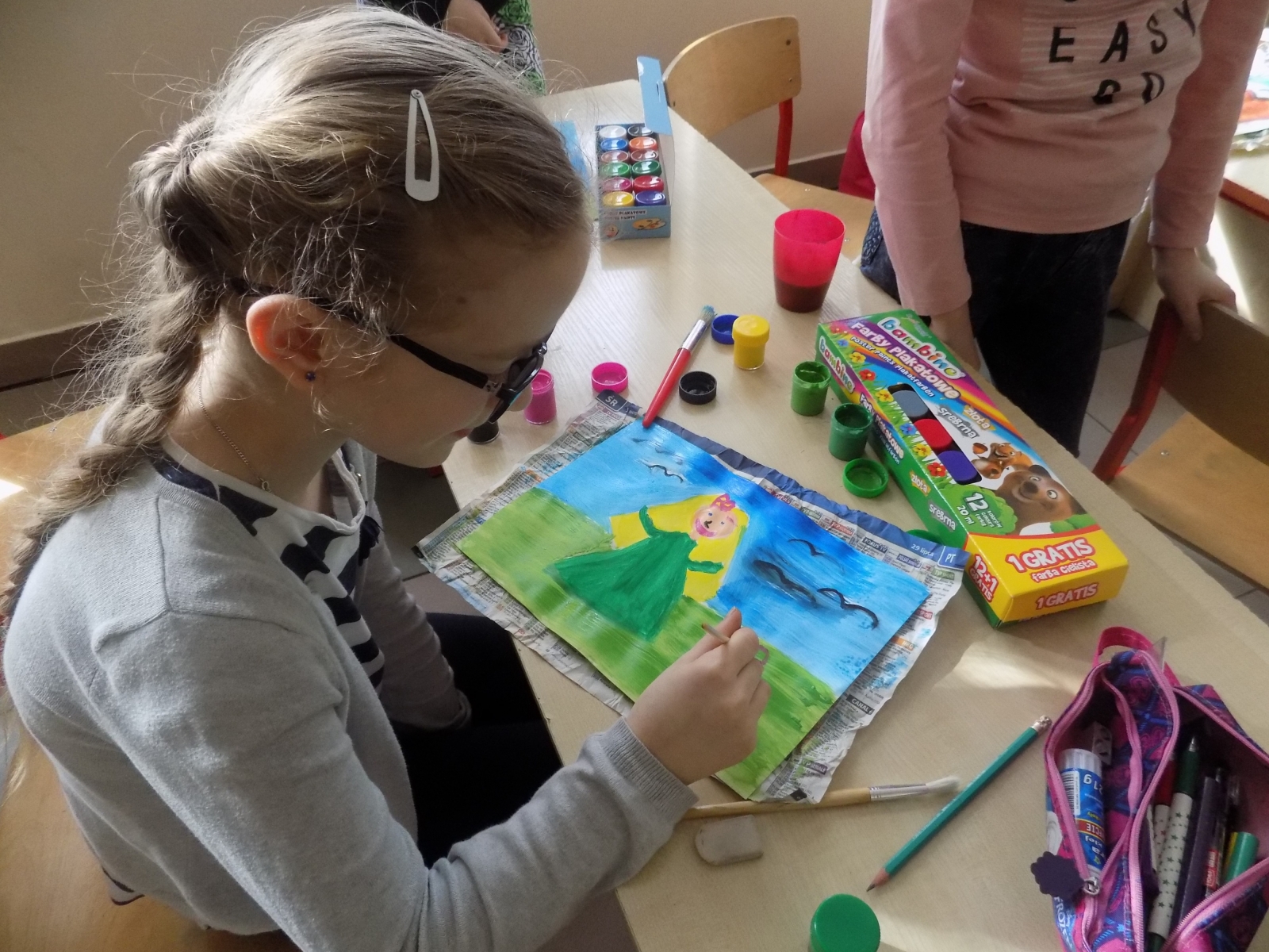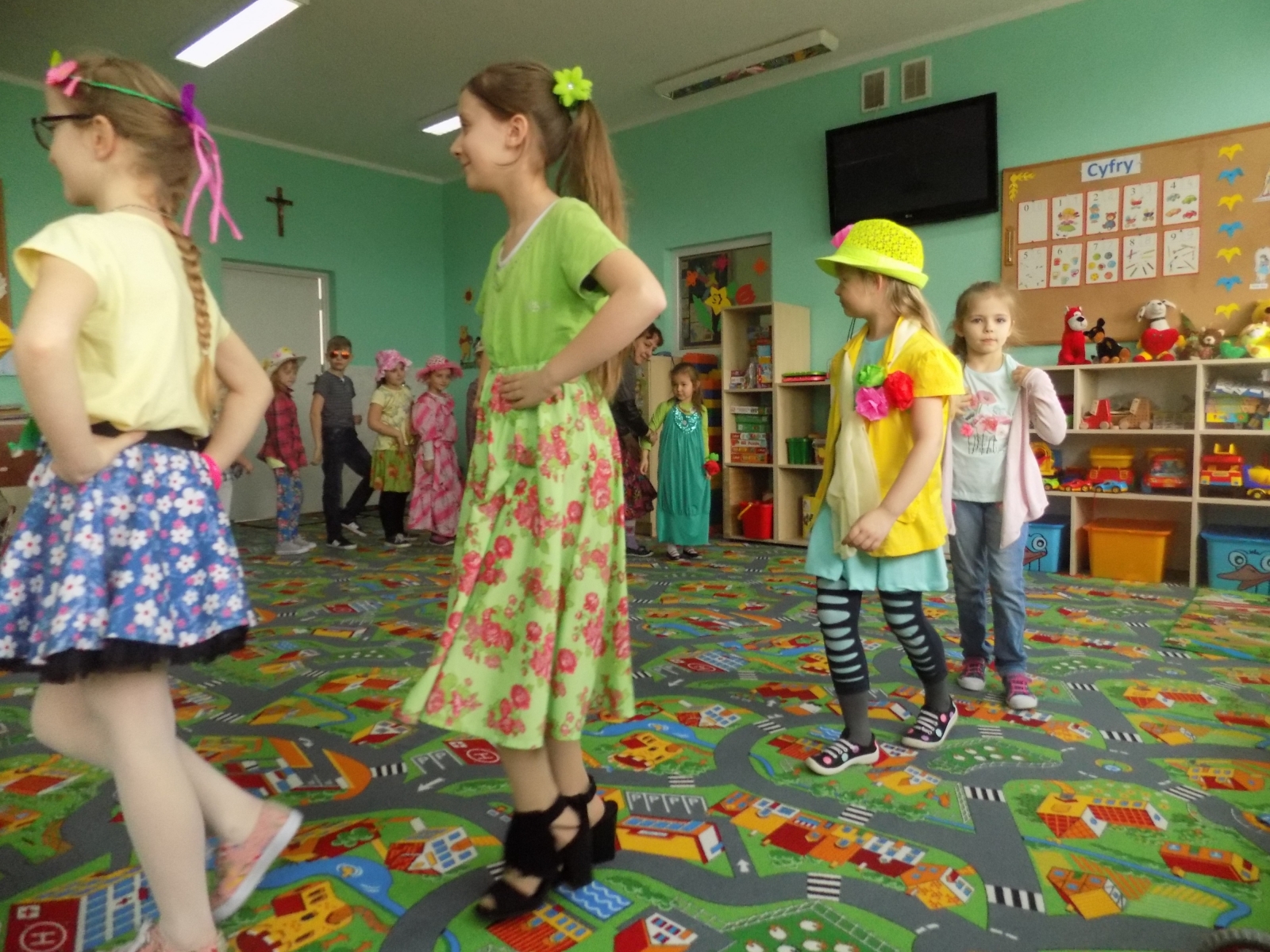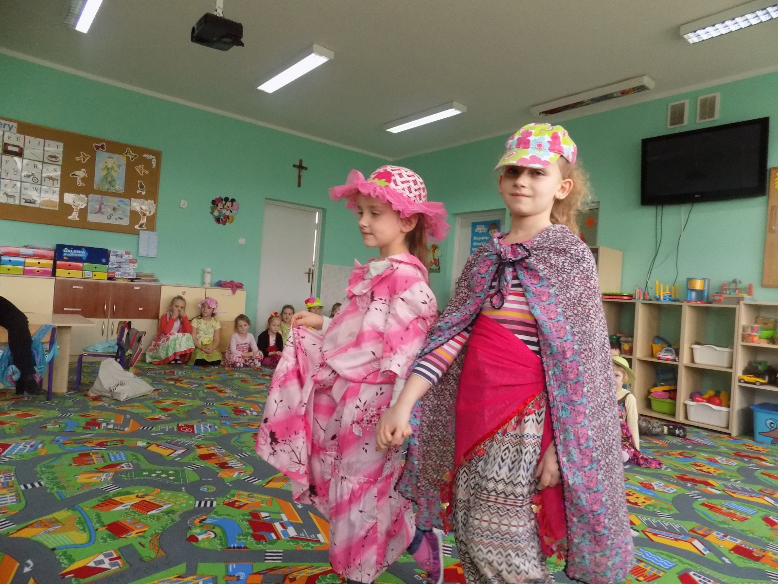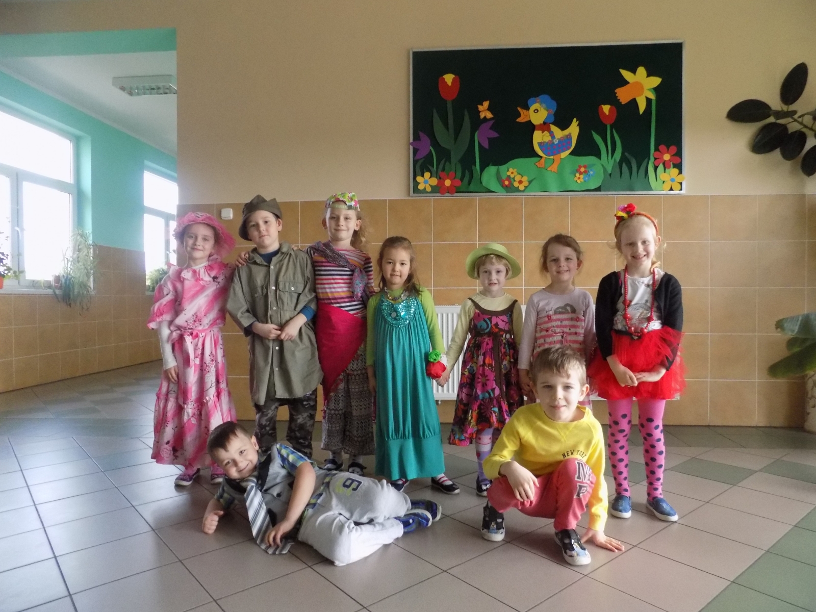 W naszej szkole uczniowie od rana malowali farbami wiosenne obrazy. Kolorowe farby trafiały nie tylko na kartki papieru. Na zakończenie zajęć odbył się pokaz mody wiosennej. Na wybiegu prezentowały się "sukienki babci", "krawaty taty", "kapelusze mamy", "wesołe kolory" i "doskonały humor". Pokaz zakończył się sesją zdjęciową. Uczniowie wracali do domów w doskonałych nastrojach i takiego właśnie samopoczucia życzymy wszystkim na kolejne wiosenne dni.