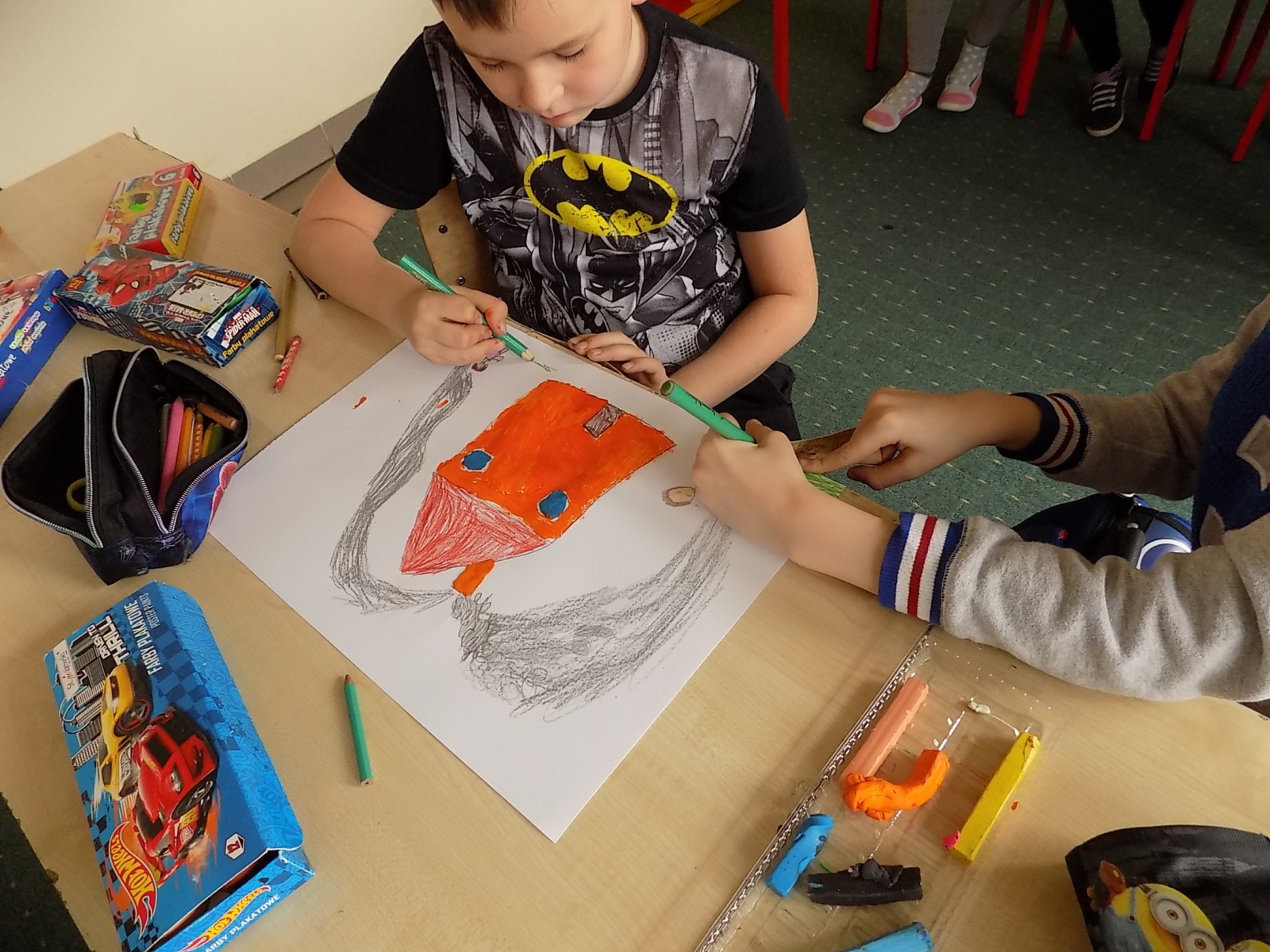 Druga godzina przeznaczona została na warsztaty plastyczne, podczas których każda grupa wykorzystując różnorodne materiały wykonała wspólnie plakat promujący akcję „Oddychaj i pyłu nie wdychaj”.