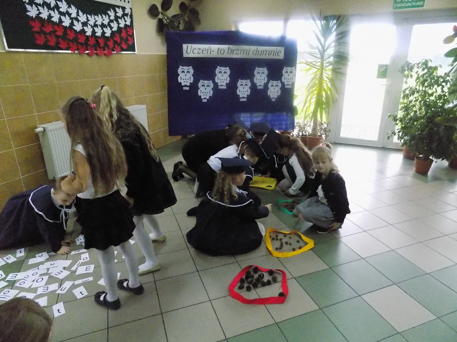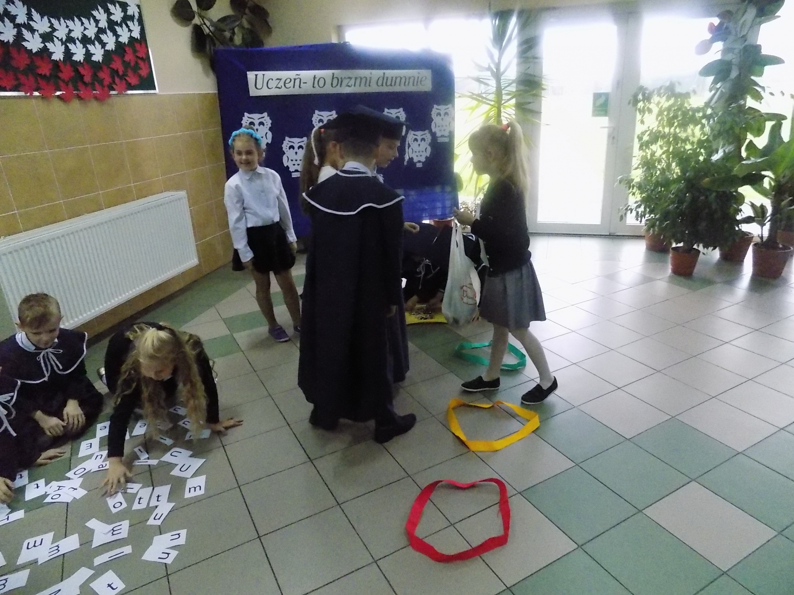 Natomiast po oficjalnej części uroczystości nastąpiły "otrzęsiny", które przygotowały uczennice klasy III wraz ze swoją wychowawczynią panią Barbarą Chojnacką. Na zakończenie starsze koleżanki wręczyły słodkie upominki i stwierdziły, że przyjmują swoich młodszych kolegów do braci uczniowskiej.