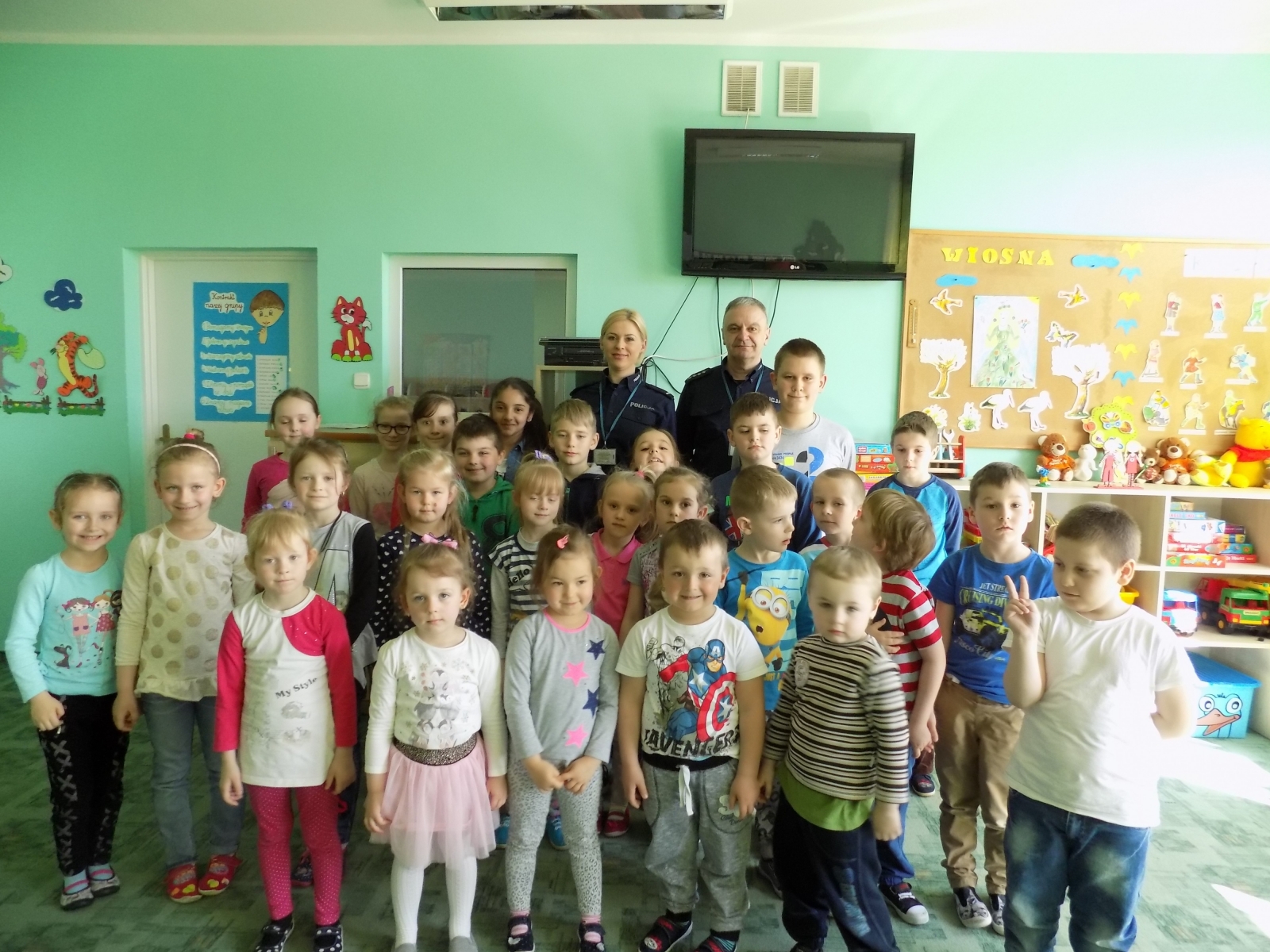 Dnia 21 kwietnia odbyło się spotkanie z funkcjonariuszami policji dotyczące bezpiecznego korzystania z internetu. Dzieci obejrzały film obrazujący zagrożenia jakie mogą pojawić się w sieci. Pan policjant przeprowadził pogadankę na temat bezpieczeństwa dzieci na drodze oraz właściwego zachowania w kontaktach z nieznajomymi. Dzieci zgłaszały wiele pytań, na które zaproszeni goście chętnie udzielali odpowiedzi.