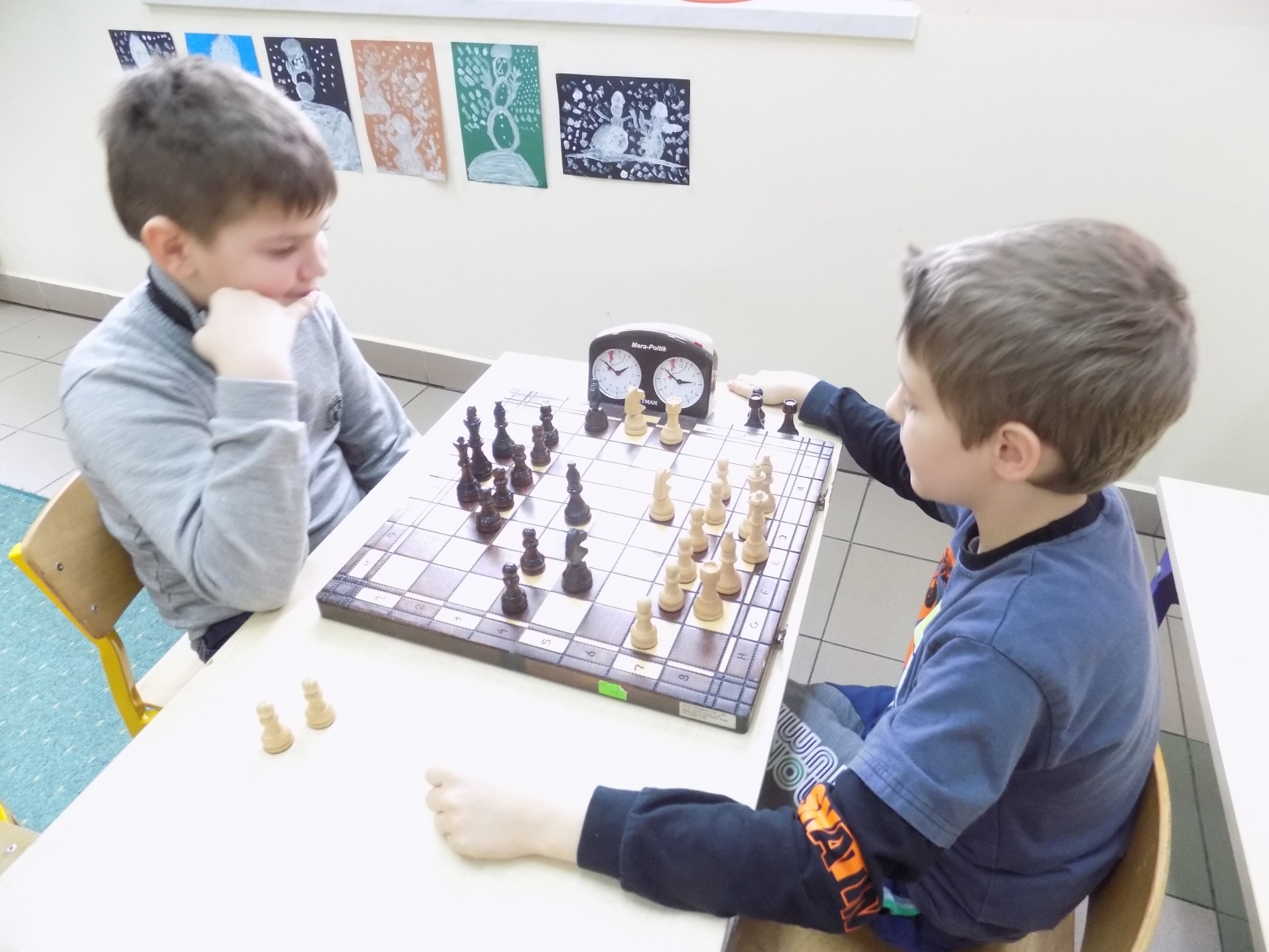 Do udziału w rozgrywkach Szkolnej Ligii Szachowej zgłosiło się czworo uczestników. Szczególne uznanie należy się uczennicy klasy I Natalki Pacynko, która dzielnie walczyła z kolegami z klasy III. Doświadczenie starszych kolegów spowodowało, że to oni będą reprezentowali naszą szkołę w Gminnej Lidze Szachowej. Skład szkolnej drużyny przedstawia się następująco: