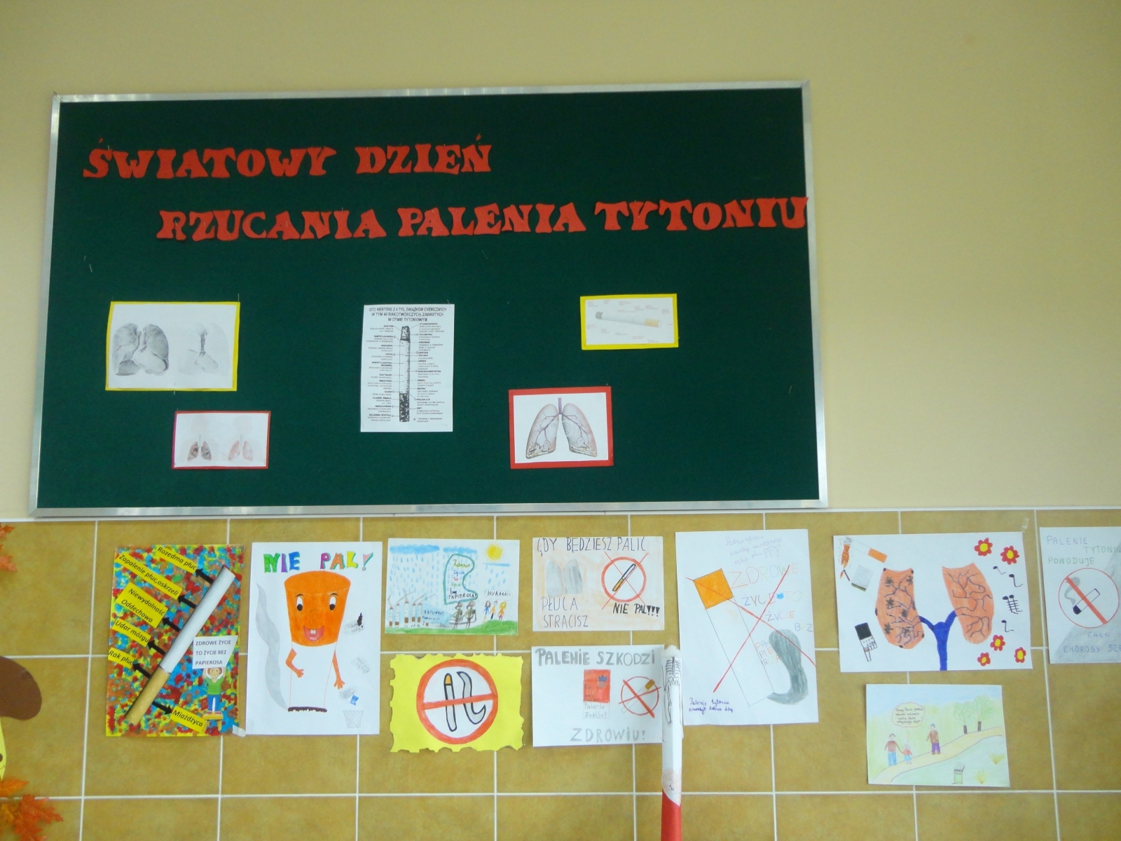 Uczniowie wykonali gazetki ścienne w swoich klasach i na korytarzu, związane z obchodami Światowego Dnia Rzucania Palenia Tytoniu.