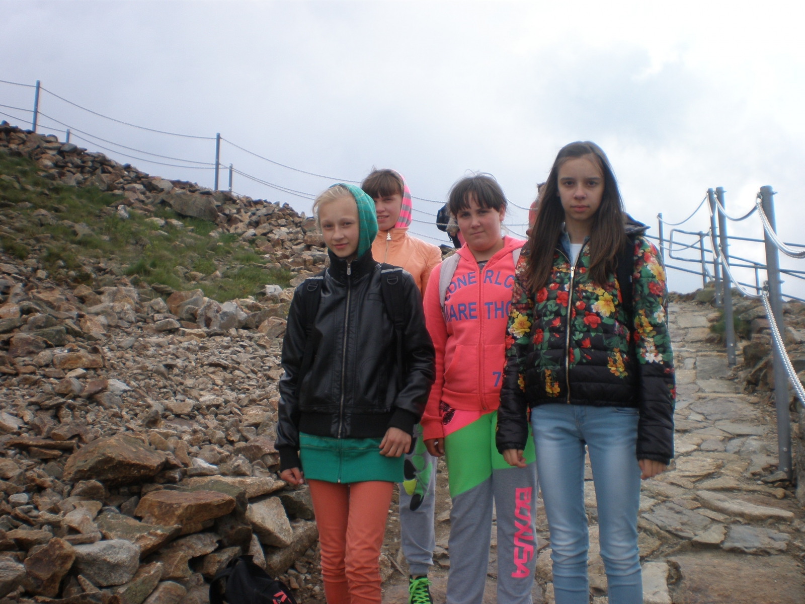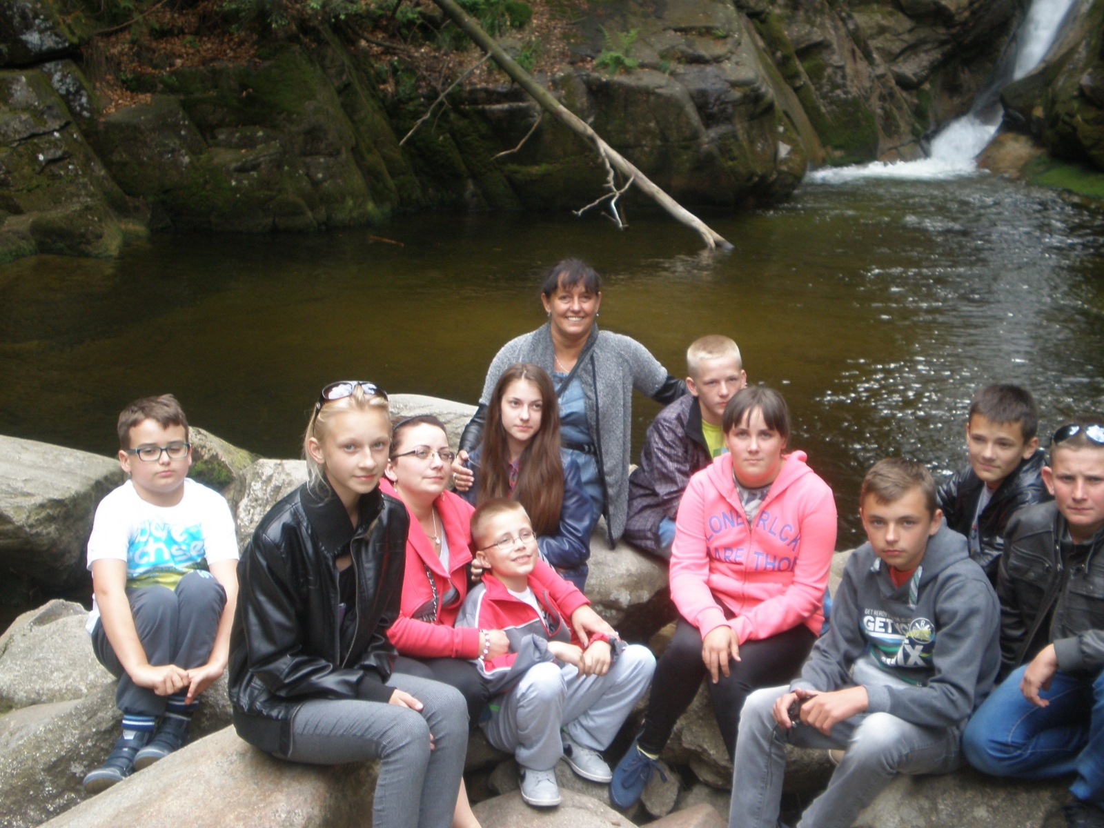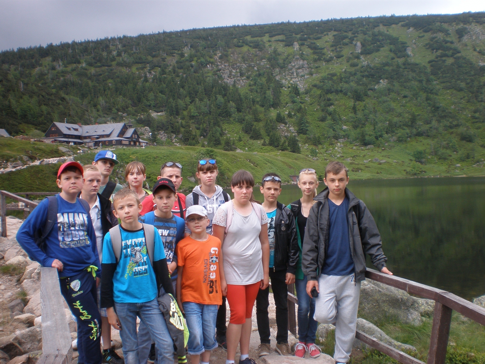 W dniach 16-18 czerwca 2014r. uczniowie klas IV -VI uczestniczyli w wycieczce do Kotliny Jeleniogórskiej. Dzieciom towarzyszyły również mamy. Pierwszego dnia skorzystały z atrakcji zaoferowanych przez aquapark we Wrocławiu a będąc już w Karpaczu późnym popołudniem obejrzeli Świątynię Wang. Kolejny dzień był bardzo ekscytujący. Wycieczkowicze mieli za zadanie zdobyć najwyższy szczyt Karkonoszy - Śnieżkę. Zadanie ułatwiał fakt, że część trasy pokonaliśmy wyciągiem krzesełkowym. Radość ze zdobycia najwyższego szczytu trudno opisać. W nagrodę wycieczkowicze korzystali z atrakcji toru saneczkowego KOLOROWA w Karpaczu. Przejazdy dla nich ufundowała Rada Rodziców. Jeszcze tego samego dnia już w miejscu noclegowym uczestnicy posilali się grillowanymi kiełbaskami. Dzień trzeci to pokonanie trasy do Samotni, obiad , ostanie zakupy no i oczywiście przejazdy na torze saneczkowym, a potem powrót do domu. W trakcie podróży powrotnej obowiązkowy posiłek w McDonaldzie we Wrocławiu. Aby wycieczka długo pozostała w pamięci uczestników, biuro turystyczne, z którego usług korzystaliśmy, ufundowało dla dzieci słodki batonik i pokryło koszty grillowania.