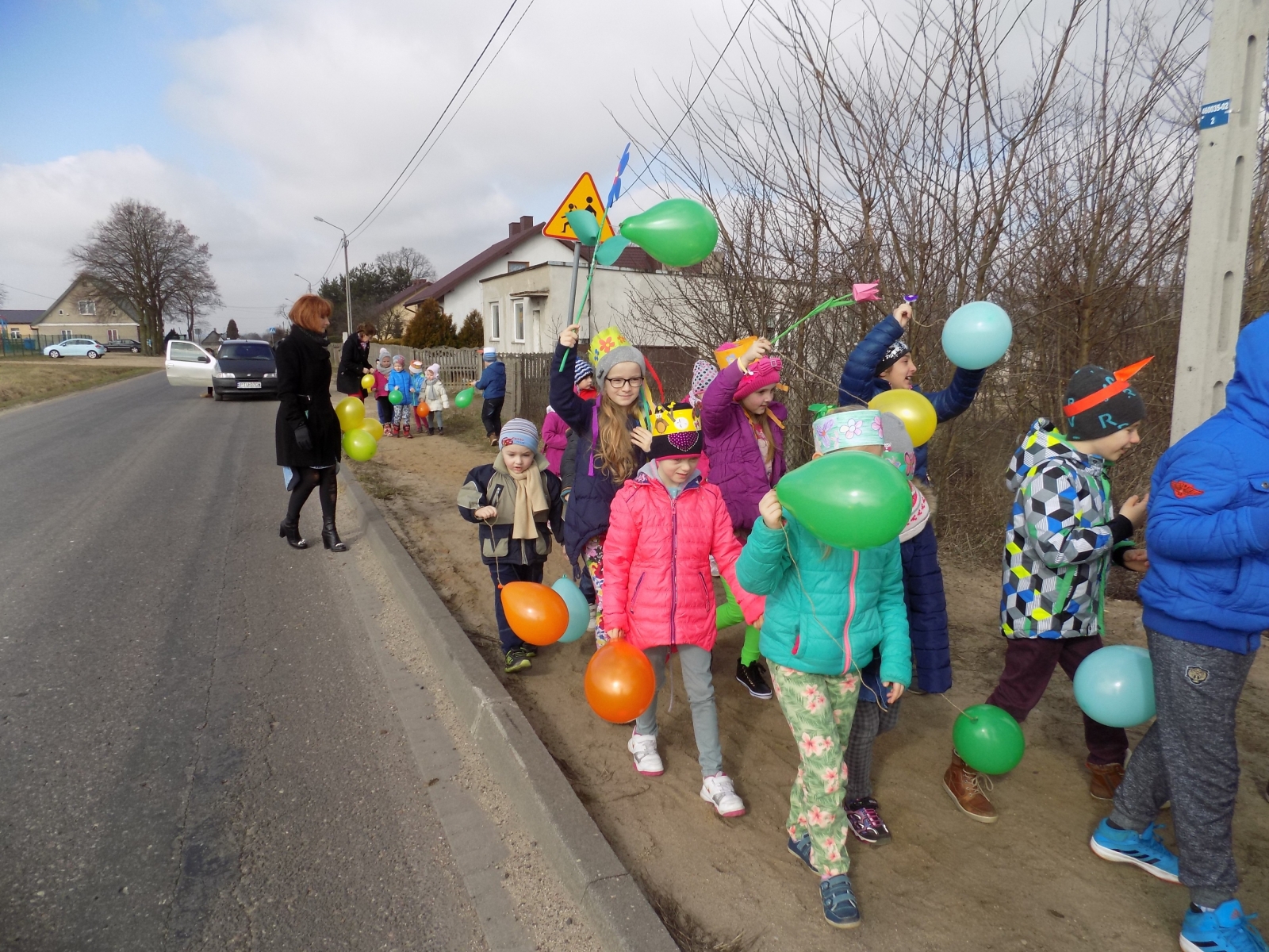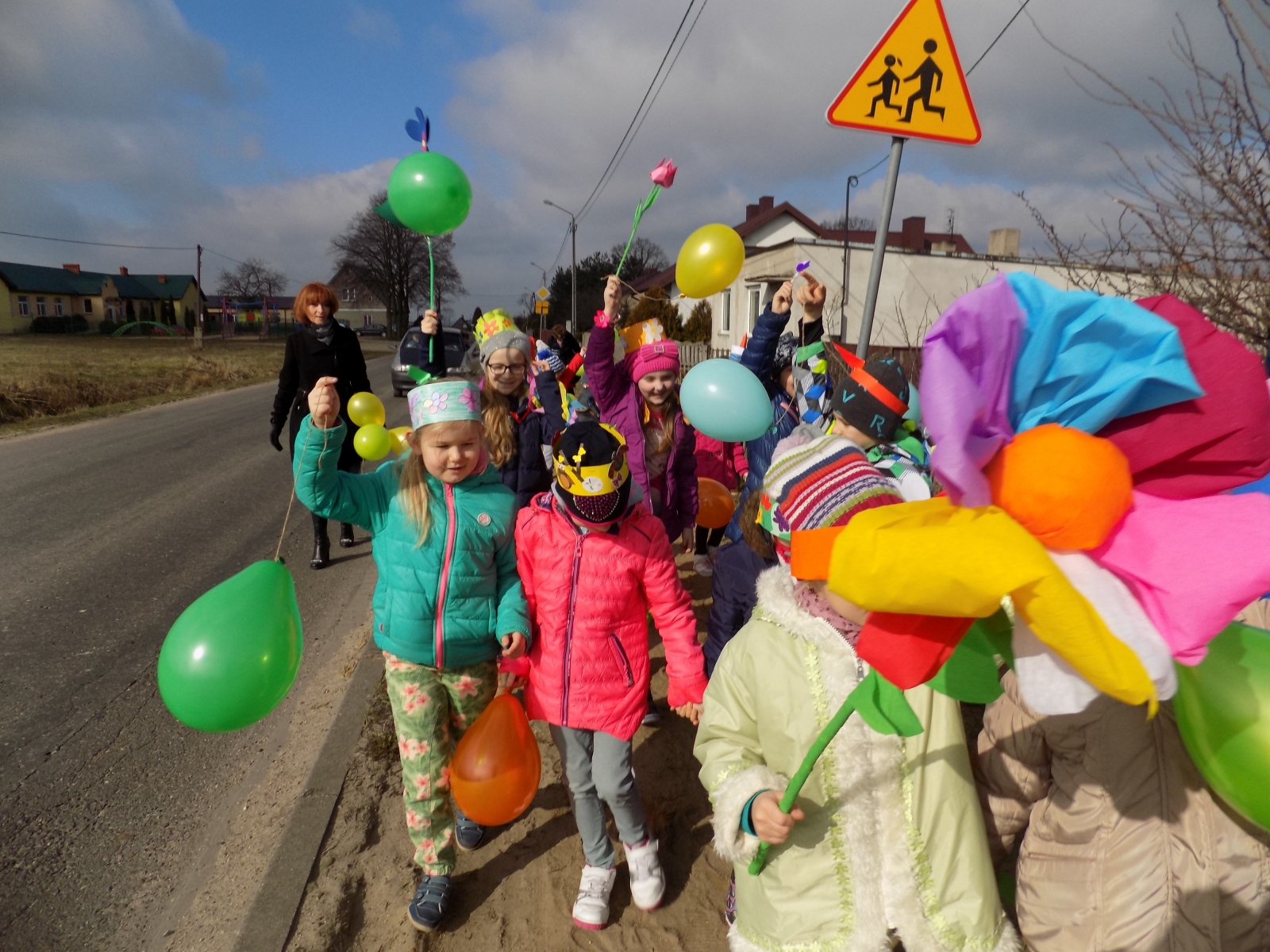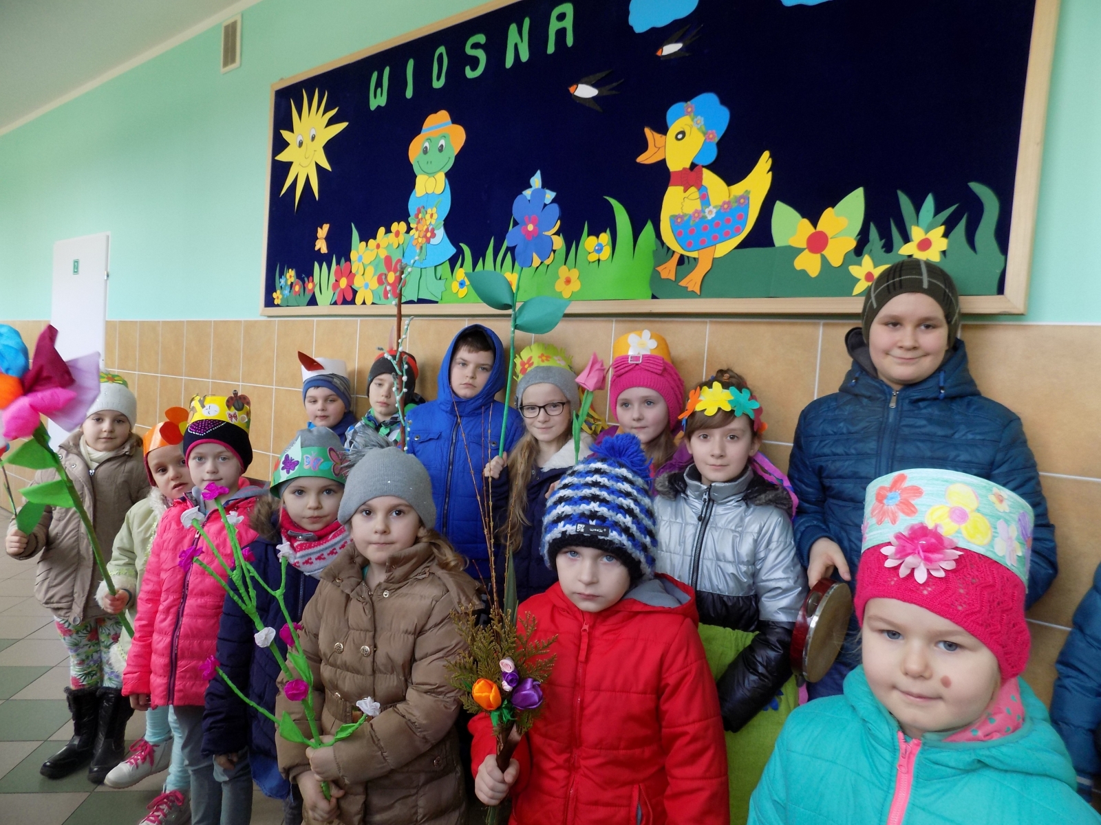 Wiosna, to pora roku, którą wszyscy witają bardzo gorąco. Tęsknota za zielenią, śpiewem ptaków oraz wysokimi temperaturami powoduje że każdy z utęsknieniem czeka na tę niezwykłą, wręcz magiczną porę roku. Na dworze jeszcze szaro, lecz uczniowie przygotowali dla siebie piękne kolorowe rekwizyty, aby w barwnym korowodzie ogłosić nadejście wiosny w całej wiosce. Dobrzy obserwatorzy potrafili w czasie marszu odnaleźć wiele wiosennych zwiastunów.