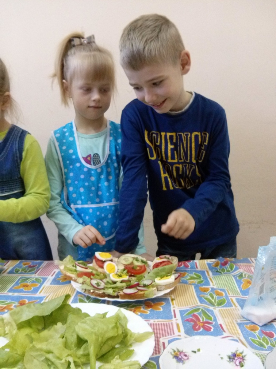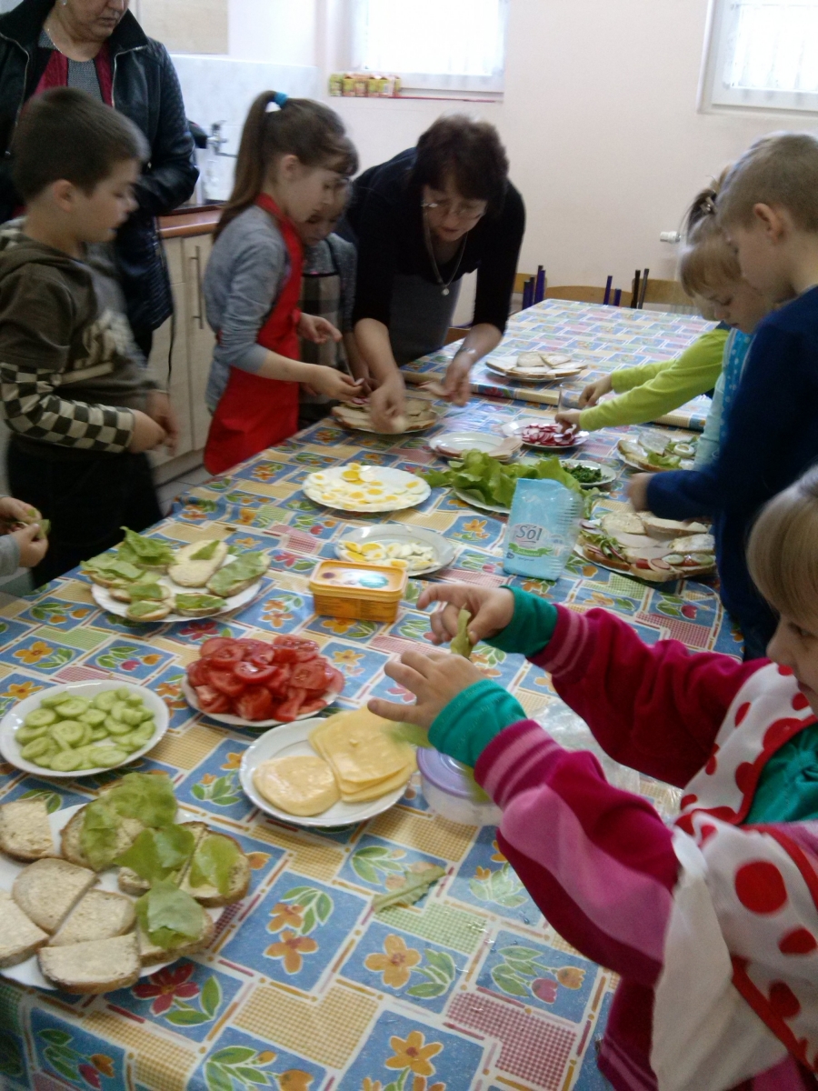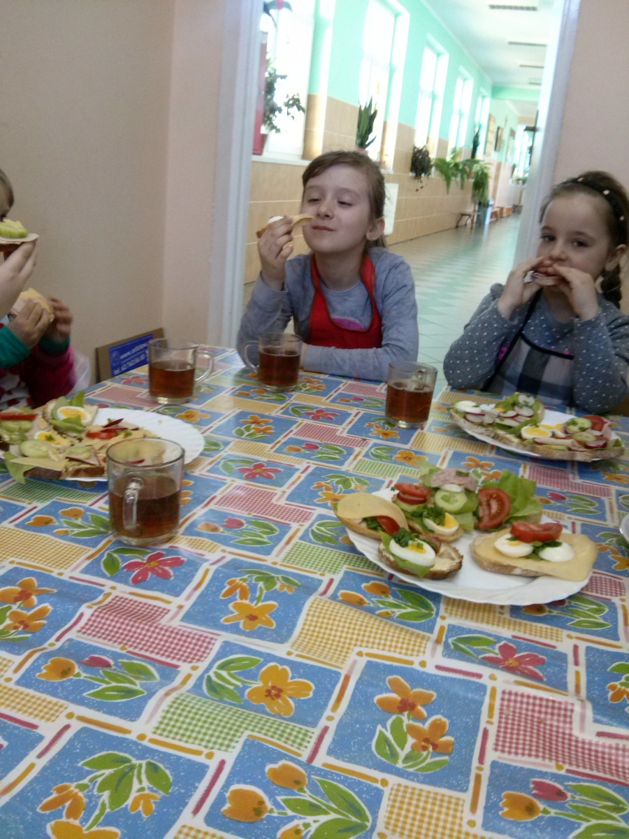 Dzieci z oddziału przedszkolnego i uczniowie klasy I we wtorek 21 kwietnia w ramach projektu "Moje dziecko idzie do szkoły" samodzielnie przygotowywały kanapki na śniadanie. Pamiętały o przestrzeganiu higieny i bezpieczeństwa podczas pracy. Dzieci dowiedziały się o konieczności spożywania warzyw w codziennej diecie. Kanapki były smaczne i kolorowe, dlatego szybko znikały z talerzy.